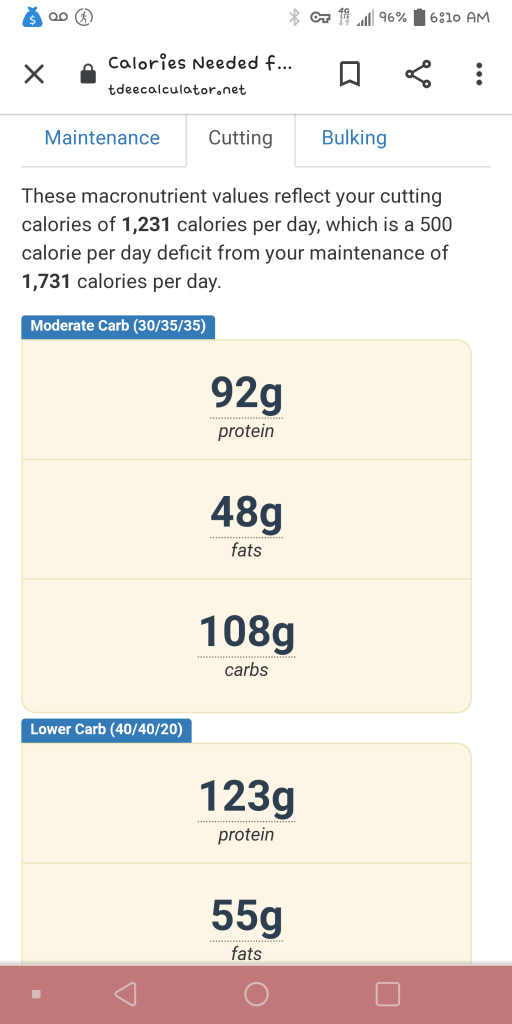 But I wanted to take a look at my TDEE again to see if my caloric intake should change, and I did one better to look at my macros I should be taking into account.